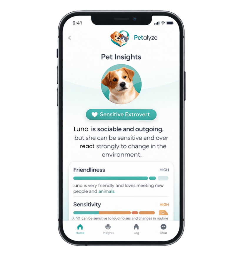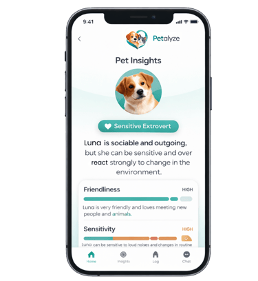 We believe that every pet has a unique personality, and their behavior is a way of communicating how they feel. Changes in mood, energy, appetite, or activity can often be signs of stress, boredom, anxiety, or underlying health issues. Petalyze helps you track these daily habits and turn them into clear, easy-to-understand insights.